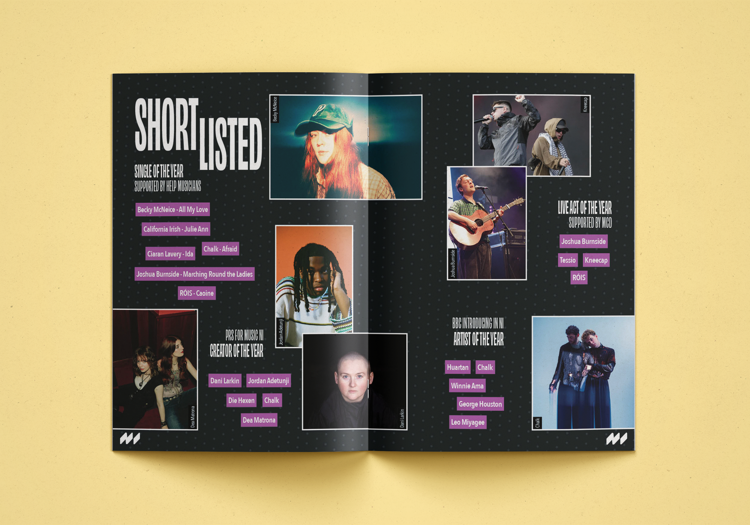 For the past 3 years, I have designed the booklet/programme for the night of the awards. It contains information on the artists nominated and performing.
